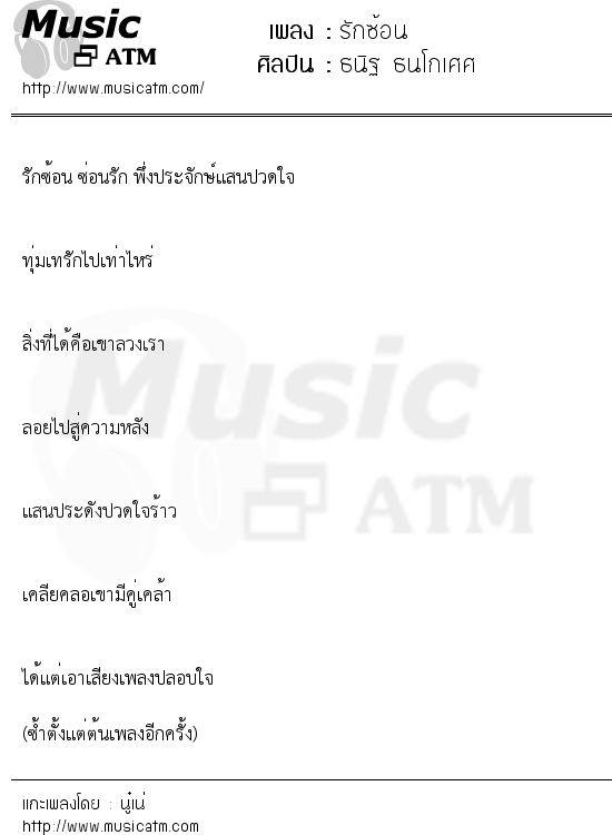 นอกจากหัวข้อ รักซ้อน แล้วคุณสามารถดูเนื้อเพลงเพิ่มเติมได้ที่นี่: Lyrics.