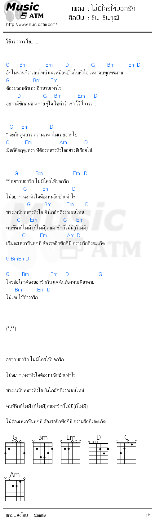 คอร์ดเพลง ไม่มีใครให้บอกรัก – ชิน ชินวุฒิ – คอร์ดเพลงใหม่.