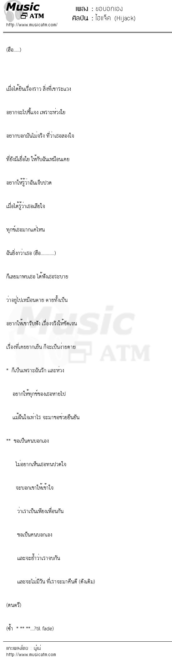 เนื้อเพลง ขอบอกเอง – ไฮแจ็ค (Hijack)