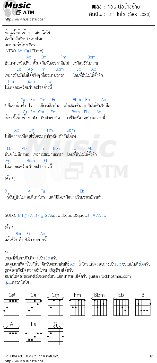 คอร์ดเพลง ก้อนเนื้อข้างซ้าย – เสก โลโซ (Sek Loso) – คอร์ดเพลงใหม่.