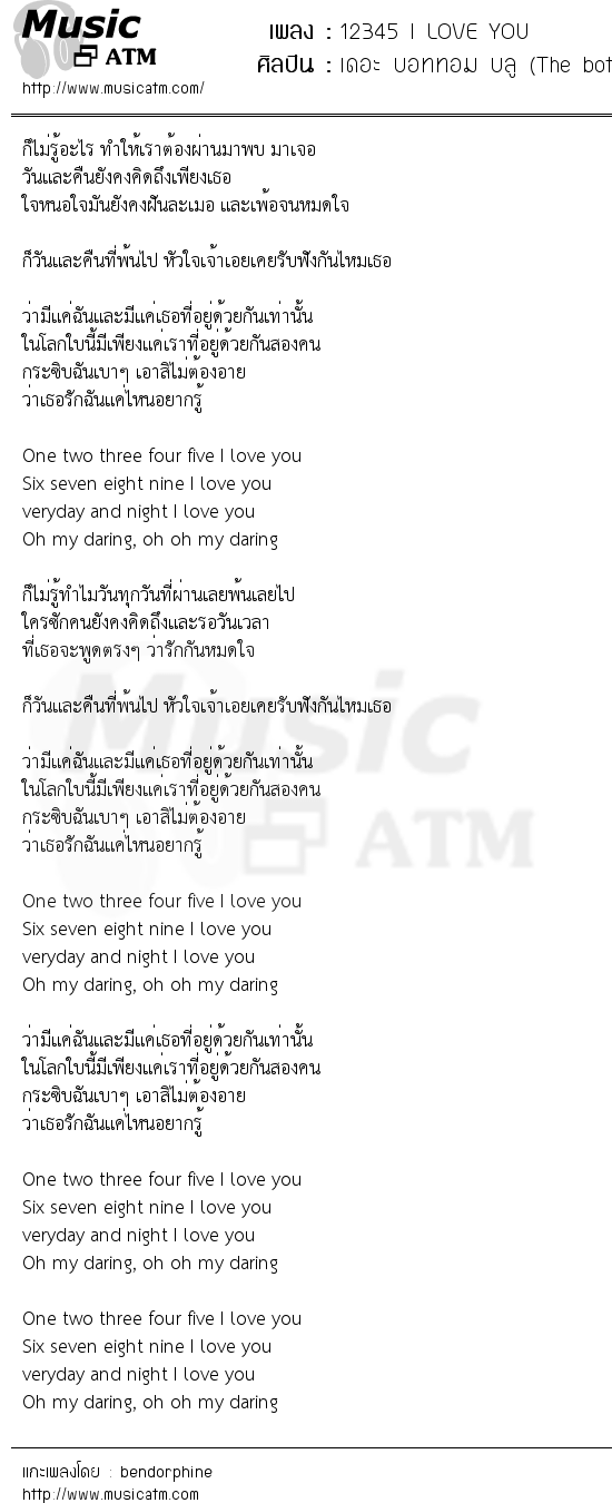 รูปภาพที่เกี่ยวข้องกับ เนื้อเพลง 12345 I LOVE YOU – เดอะ บอททอม บลู (The bottom blues) เนื้อเพลง.