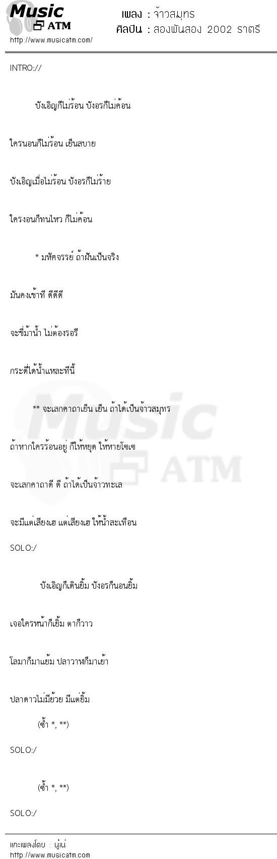 นอกจากหัวข้อ จ้าวสมุทร แล้วคุณสามารถดูเนื้อเพลงเพิ่มเติมได้ที่นี่: Lyrics.