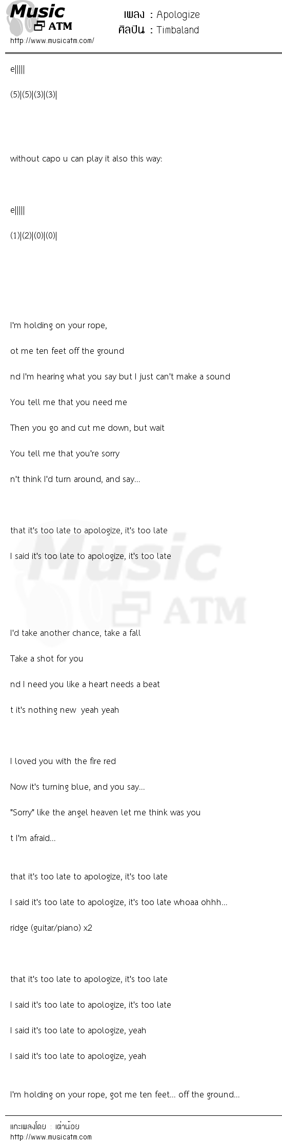 นอกจากหัวข้อ Apologize แล้วคุณสามารถดูเนื้อเพลงเพิ่มเติมได้ที่นี่: Lyrics.