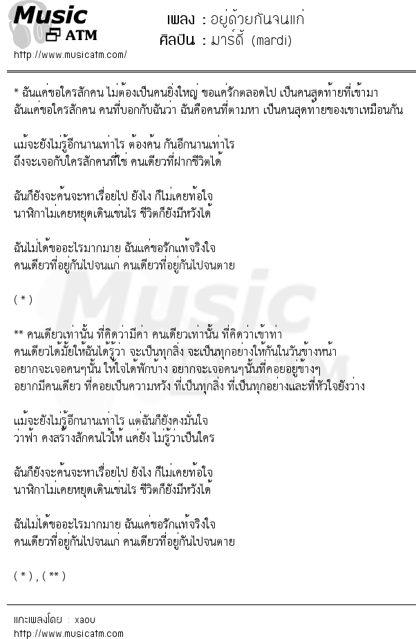 นอกจากหัวข้อ อยู่ด้วยกันจนแก่ แล้วคุณสามารถดูเนื้อเพลงเพิ่มเติมได้ที่นี่: Lyrics.